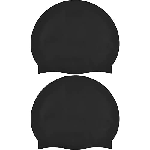 Newaner 2-pack badmössa silikon, badmössor för simmare öronskydd, ripstop-beläggning för komfort och halkskydd, simmössa, badmössa för långt hår och för kvinnor, män (svart)