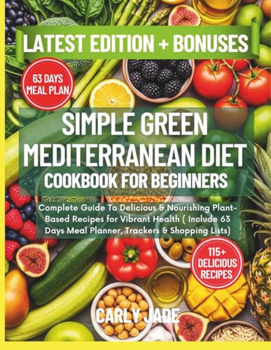 SIMPLE GREEN MEDITERRANEAN DIET COOKBOOK FOR BEGINNERS: Complete Guide to Delicious & Nourishing Plant-Based Recipes For Vibrant Health (Include 63 Days Meal Planner, Trackers & Shopping Lists)