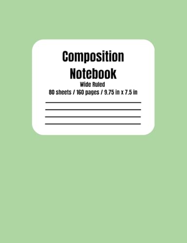 Composition Notebook Wide Ruled with Simple Green Cover: 80 Lined Sheet Journal | 160 pages | 9.75 in by 7.5 in