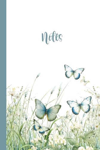 Blue Butterfly Hardcover Notebook - Glossy Finish: 6x9 inches - 150 pages - college ruled - blue - green - simple