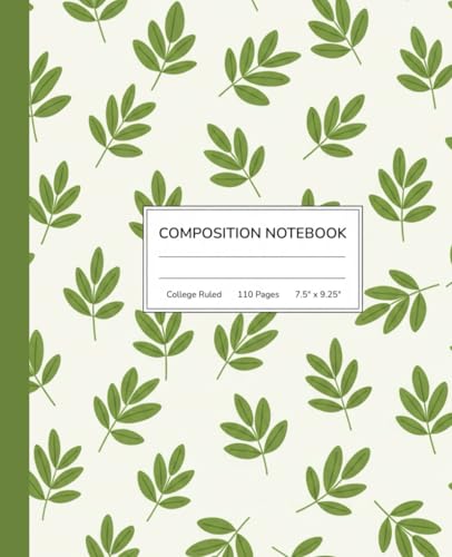 Simple Green Leaves Pattern Composition Notebook: A Minimalist Nature Aesthetic Journal with Botanical Foliage | Cute Plant Pattern Notebook for Students, Boys, and Girls