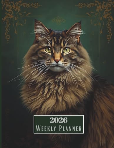 2026 Weekly & Monthly Planner with Gray Tabby Cat | Simple Green Cover | Large 8.5x11" Organizer with 110 Cat-Themed Pages