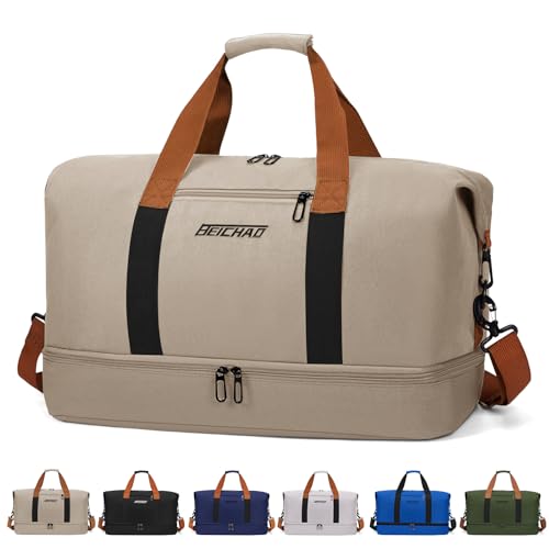 Sportväska och resväska för kvinnor och män – med skofack och våtfack, stor kapacitet, resväska, lätt träningsväska, vattentät simväska för resor, sport, fitness, C – kaki, 460*280*250mm