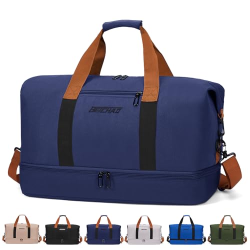 Resväska dam sportväska Ryanair handbagage väska 40 x 30 x 20 weekender bag simväska vattentät reseväska duffle bag 40 x 20 x 25 fitnessväska träningsväska kvinnor för resor gym, B06-marin, New