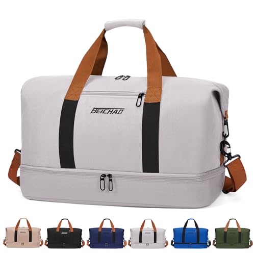 Sportväska och resväska för kvinnor och män – med skofack och våtfack, stor kapacitet, resväska, lätt träningsväska, vattentät simväska för resor, sport, fitness, A – grå, 460*280*250mm