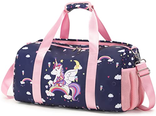 Resväska barn dansväska weekend bag bastuväska träningsväska simväska duffle bag sportväska med skofack, Rosa, enhörning, 18 "L * 9.75" H * 8 "W, Resväska