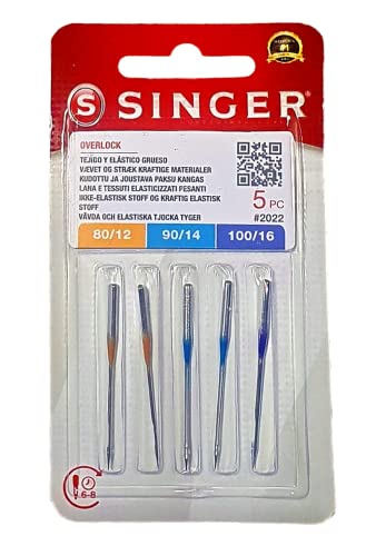 5 Original Singer Overlock (Ultralock 14SH) symaskinsnålar 2022 Styrka 80/12 90/14 100/16
