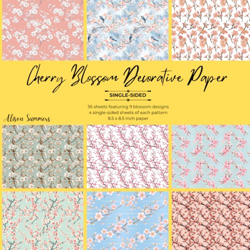 36 Sheets More Cherry Blossom-Themed Decorative Paper Pad for Scrapbooking: 9 Single-Sided Designs 8.5" x 8.5" for Journalling & Other Crafts
