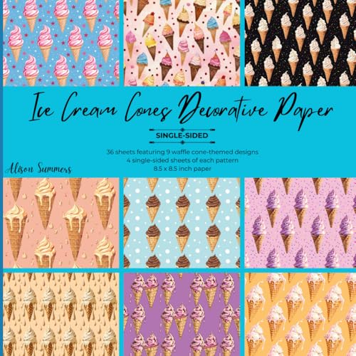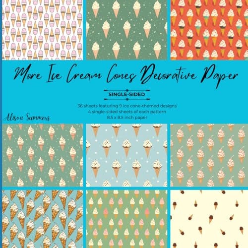 36 Sheets More Ice Cream Cones-Themed Decorative Paper Pad for Scrapbooking: 9 Single-Sided Designs 8.5" x 8.5" for Journalling, Card Making & Other Paper Crafts