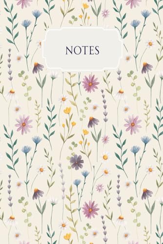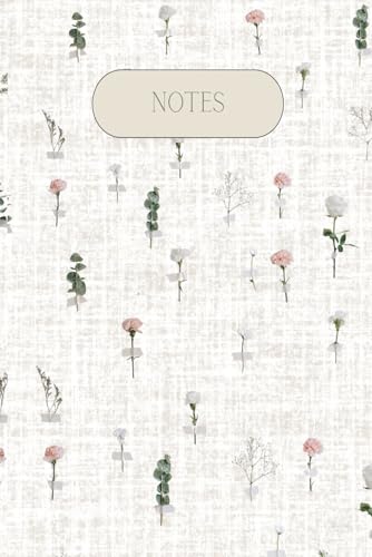 Dot Grid Journal, Single Falling Floral Design, Titled, "Notes",: 6 x 9 Inch, Soft Matte-Finish,120 Cream Color Pages