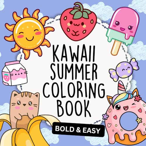 Kawaii Summer: Cute Coloring Book ... Vibes, Ice Cream, and Bold and Simple Designs for Adults, Children, Teens, and Seniors - Adorable and Simple ... Single-Sided Pages for Fun and Relaxation