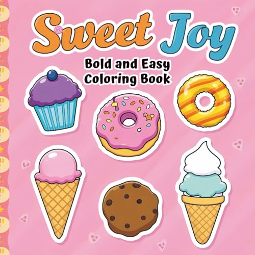 Sweet Joy Bold and Easy Coloring Book: 50 Dessert Pages to Color – Thick Lines , Single-Sided , 8.5" x 8.5" , Ice Cream, Cupcakes – Bold and Simple Coloring for Adults and Kids
