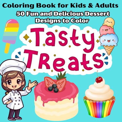 Sweet Treats Coloring Book for Kids & Adults: 50 Delicious Dessert Designs – Cupcakes, Candy, Ice Cream & More!: Fun and Relaxing Dessert Coloring ... | Easy and Intricate Designs | Single-Sided