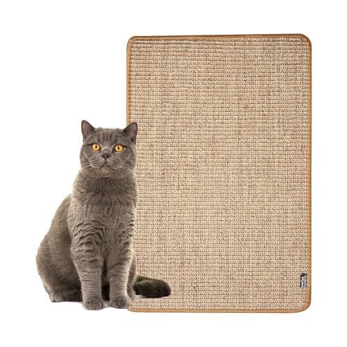 Klösmatta för katter – 60 x 40 cm slitstark och multifunktionell sisalmatta med halkfri baksida, skyddar möbler (brun)