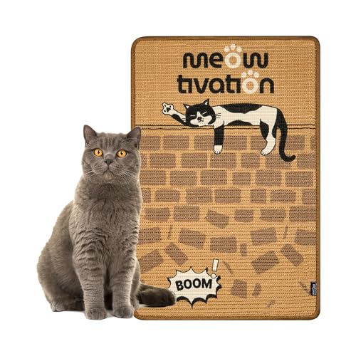 Klubbmatta för katter – naturlig sisalmatta med Berlinväggsdesign – slitstark och multifunktionell, robust kattklösmatta och klösmöbel