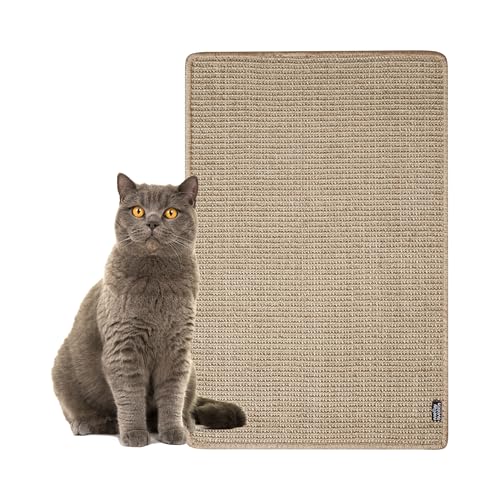 Klösmatta för katter – 60 x 40 cm slitstark och multifunktionell sisalmatta med halkfri baksida, skyddar möbler (beige)