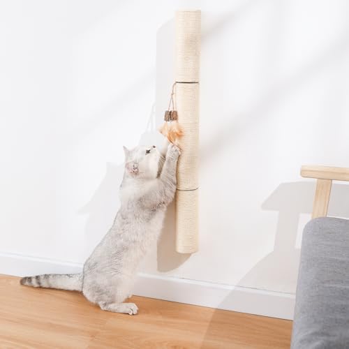 MIUZMORE skrapstolpe, väggmonterad skrapstolpe stor, sisalrep för skrapstolpe, 28,9'' klätterväggkatter med kattleksak Kattträd