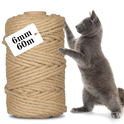 Sisalrep för Klösträd 6 mm x 60 m – Rep till Klöspelare och Klösträd, Ersättningsrep för Katter, DIY, Hem och Trädgård