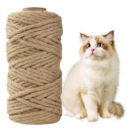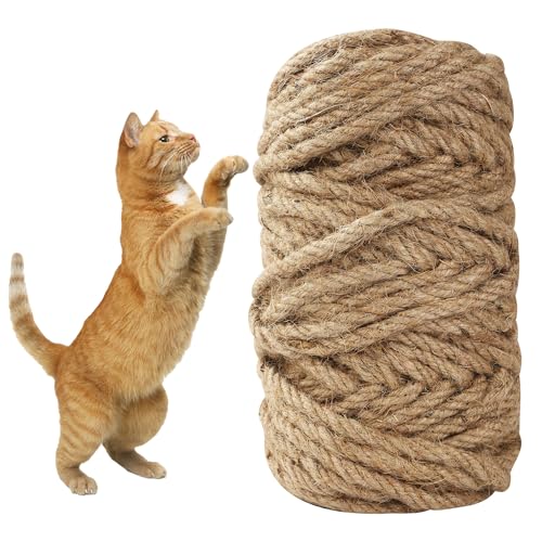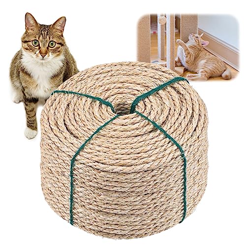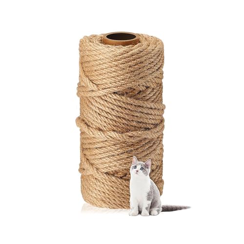 JOYUE Sisalrep för Klösträd, Naturligt Sisalrep Katträd Rep 6 mm x 15 m, Sisal för Katter, Reparation Eller Ersättning för Katters Klösbrädor, Katt-torn, Klösdynor, Kattträd, Trädgårdsdekoration (15M)