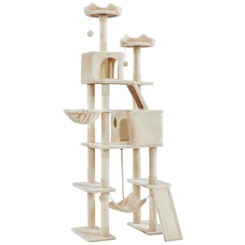 Yaheetech Katklösträd 206 cm, takhögt, XXL stort klösträd, stabilt klätterträd, klösträd för katter med sisalrep, korg, hängmatta, beige