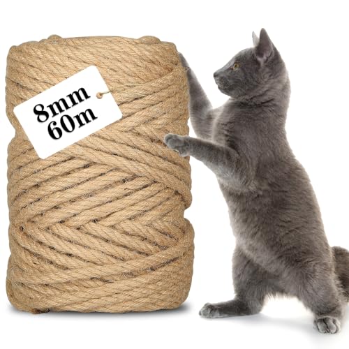CIOXSOIO 8 mm x 60 m sisalrep för kattträd, 8 mm trädklösrep, naturligt hamparep 8 mm, trädgårds- och hemdekoration