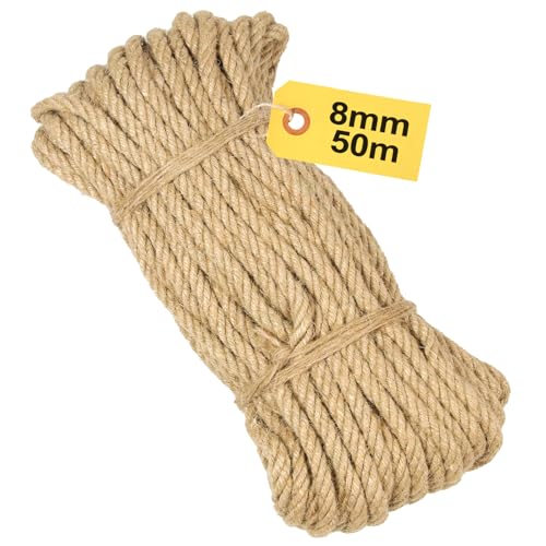MDDK DY 8 mm sisalrep för klösträd, 50 m naturrep, robust rep 8 mm för reparation av klösträd ersättningsstam, gör-det-själv-dekoration, trädgård och hushåll