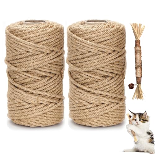 DXRPO Sisalrep för klösträd 2 stycken 6 mm 60 m, sisalrep natur, sisalrep för katter Bring en katttass-pinne med, reprep, katttillbehör, hushåll, trädgård, gör-det-själv, dekoration