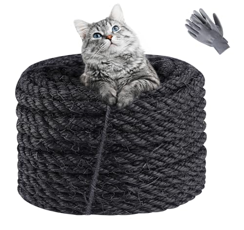 Homewit sisalrep för klösträd, sisalrep 8 mm (25 meter) sisal för klösträd, sisal rep för katter, naturligt sisalrep, lämplig för trädgårdsdekoration, kattträd – (svart)