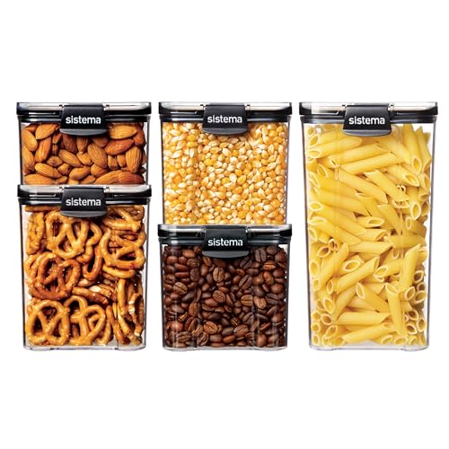 Sistema Ultra Square Tritan lufttäta skafferi förvaringsbehållare | diverse kapacitet matförvaringslösning | stapelbara | låsklämmor | BPA-fri | klar med svarta accenter | 5 stycken