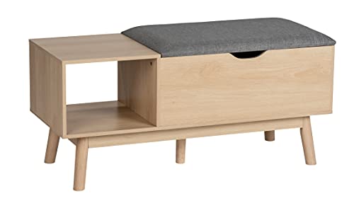 WENKO Sittbänk mod. Edda med förvaringsfack, modern skobänk med sittdyna och generöst förvaringsutrymme för hall och hall, lock som kan öppnas och tas bort, i trendigt ekutseende, 100 x 45 x 40 cm,