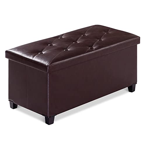 BRIAN & DANY sittbänk med förvaringsutrymme, vikbar sittpall med ben, sittkista pall med förvaringsutrymme, för vardagsrum sovrum hall, brun, 76 x 38 x 38 cm