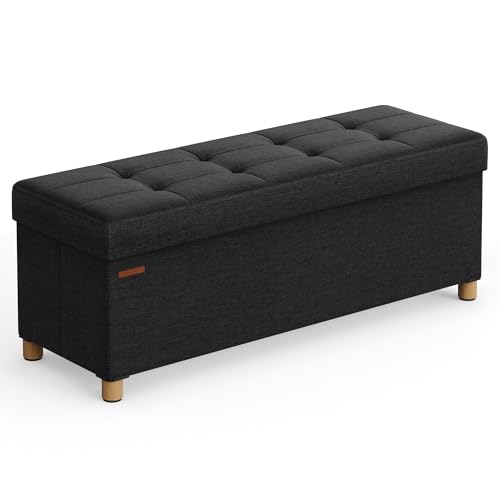Songmics Sittpall med förvaringsutrymme, vikbar sittbänk med ben, 38 x 110 x 40 cm fotbänk, förvaringslåda, kan belastas upp till 300 kg, för vardagsrum sovrum hall, bläcksvart LSF018B11