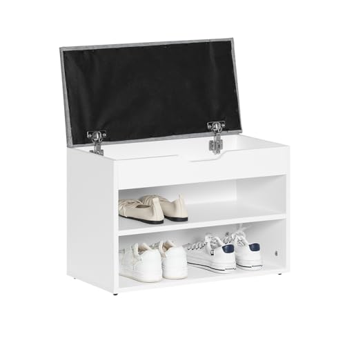 Hzuaneri Skobänk, skohylla med sits, sittbänk med förvaringsutrymme, kuddar, 6 fack, 30 x 60 x 52,7 cm, justerbara hyllor, för vardagsrum, hall, sovrum, vit-grå SB09903X