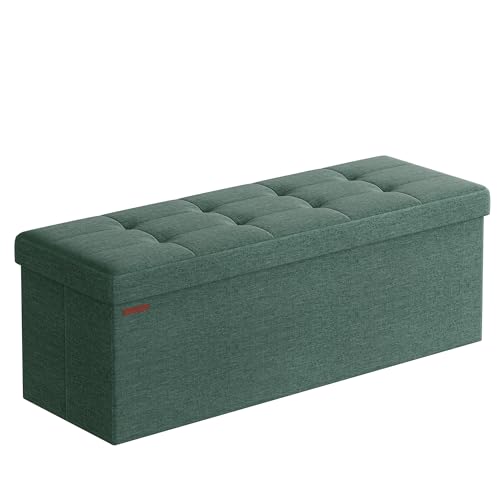 Songmics Sittpall med förvaringsutrymme, vikbar sittbänk, 38 x 110 x 38 cm fotbänk, förvaringslåda, kan belastas upp till 300 kg, för vardagsrum sovrum hall, vintagegrön LSF077C01