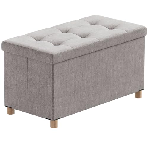 SONGMICS Sittbänk med förvaringsutrymme, sittbänk, sittpall, vikbar, 76 x 38 x 38 cm, överdrag av linneimitation, för sovrum, hall, vardagsrum, mörkgrå LSF001G01