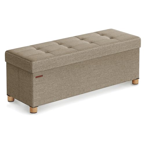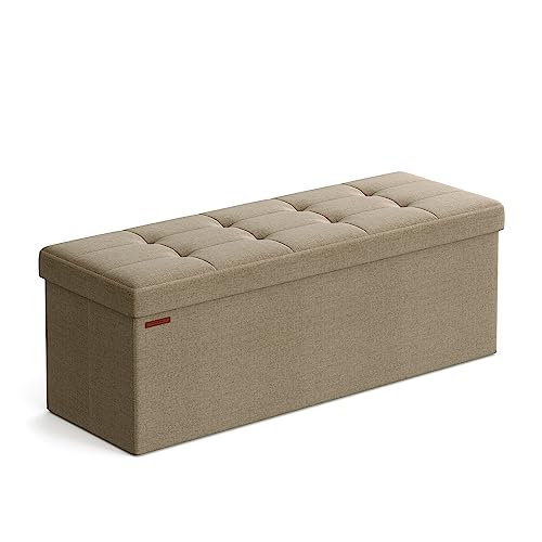Songmics Sittpall med förvaringsutrymme, vikbar sittbänk med ben, 38 x 110 x 40 cm fotbänk, förvaringslåda, kan belastas upp till 300 kg, för vardagsrum sovrum hall, kamelbrun LSF018K11