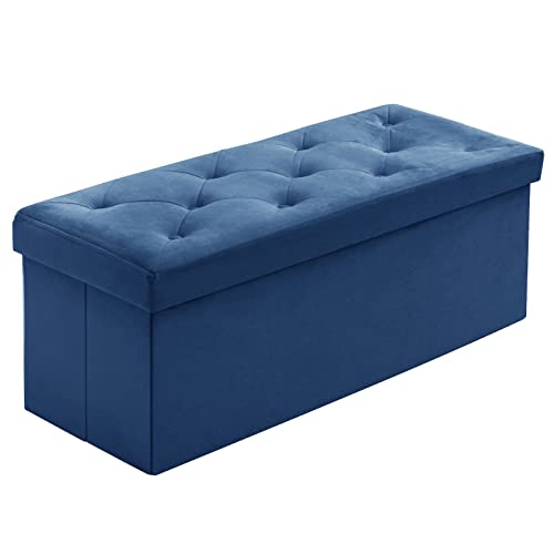 Songmics Sittpall med förvaringsutrymme, vikbar sittbänk, 38 x 110 x 38 cm fotbänk, förvaringslåda, kan belastas upp till 300 kg, för vardagsrum sovrum hall, midnattsblå LSF77IN