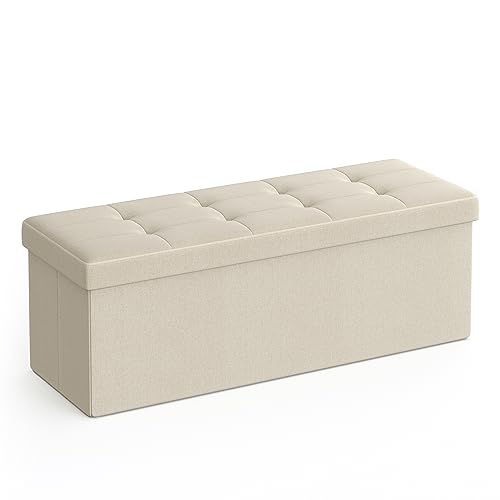 Songmics Sittpall med förvaringsutrymme, vikbar sittbänk, 38 x 110 x 38 cm fotbänk, förvaringslåda, kan belastas upp till 300 kg, för vardagsrum sovrum hall, krämvit LSF77BE