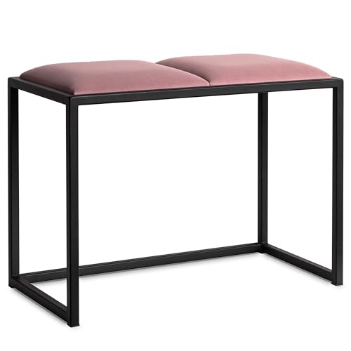 Relaxdays Sittbänk i sammet, klädselbänk med metallfötter, sammetssbänk sovrum, hall, H x B x D: 40 x 60 x 43 cm, rosa