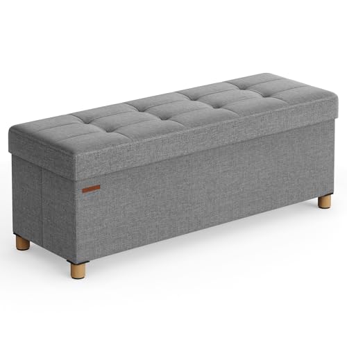 Songmics Sittpall med förvaringsutrymme, vikbar sittbänk med ben, 38 x 110 x 40 cm fotbänk, förvaringslåda, kan belastas upp till 300 kg, för vardagsrum sovrum hall, duvgrå LSF018G12