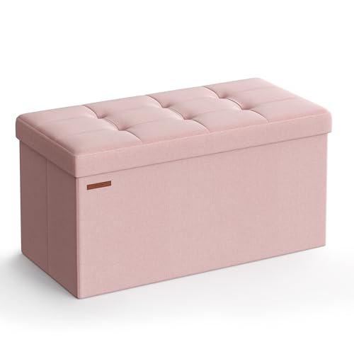 Songmics Sittpall med förvaringsutrymme, vikbar sittbänk, 38 x 76 x 38 cm fotbänk, förvaringslåda, kan belastas upp till 300 kg, för vardagsrum sovrum hall, pastellrosa LSF047R11