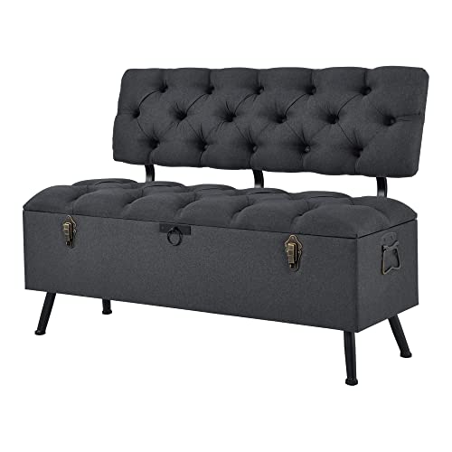 [en.casa] Malmöhus Sittkista 110 x 48 x 75 cm, sittbänk med förvaringsutrymme och ryggstöd, kistbänk, vadderad förvaringsbänk, fötter av järn, mörkgrå