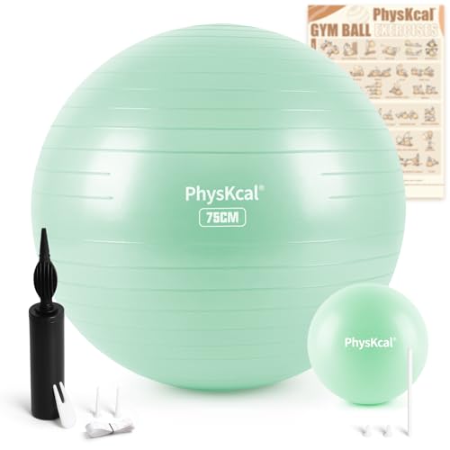 PhysKcal 75 cm lätt turkos tjock gymnastikboll och 23 cm pilatesbollset, anti-burst gymnastikboll, halkfri sittboll, balanceboll (L (68–75 cm))