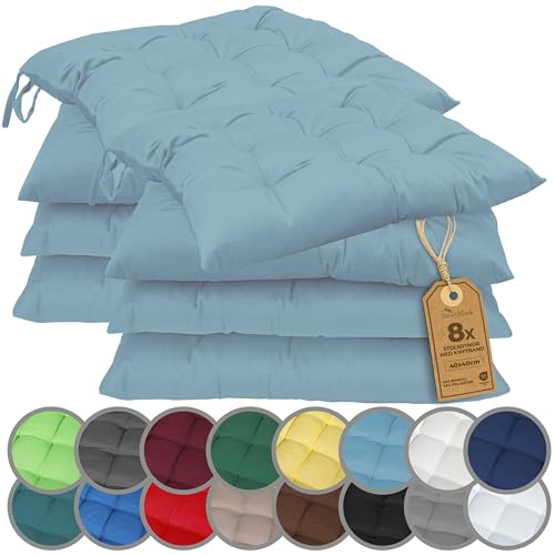 NatureMark 8-pack Stolsdynor med Remmar 40x40 cm – Fylld Sittdyna för Inomhus & Utomhus – Färg: kungsblå