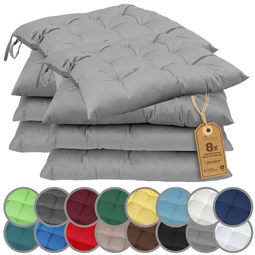NatureMark 8-pack Stolsdynor med Remmar 40x40 cm – Fylld Sittdyna för Inomhus & Utomhus – Färg: silver