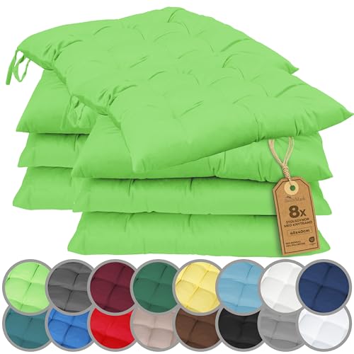 NatureMark 8-pack Stolsdynor med Remmar 40x40 cm – Fylld Sittdyna för Inomhus & Utomhus – Färg: äppelgrön