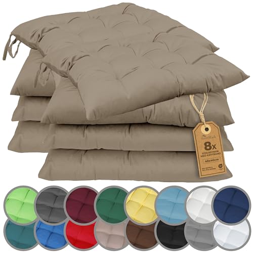 NatureMark 8-pack Stolsdynor med Remmar 40x40 cm – Fylld Sittdyna för Inomhus & Utomhus – Färg: sandfärgad