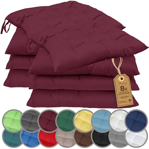 NatureMark 8-pack Stolsdynor med Remmar 40x40 cm – Fylld Sittdyna för Inomhus & Utomhus – Färg: vinröd