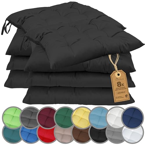 NatureMark 8-pack Stolsdynor med Remmar 40x40 cm – Fylld Sittdyna för Inomhus & Utomhus – Färg: svart