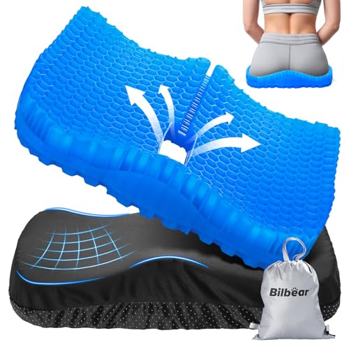 Bilbear Tjockare gel kajak sittdyna, stor gel sittdyna sittdyna för kajaker, paddling båt, svanskota, ischias, dubbeltjock sittdyna för hem, bil, rullstol, kontorsstol (blå-L)